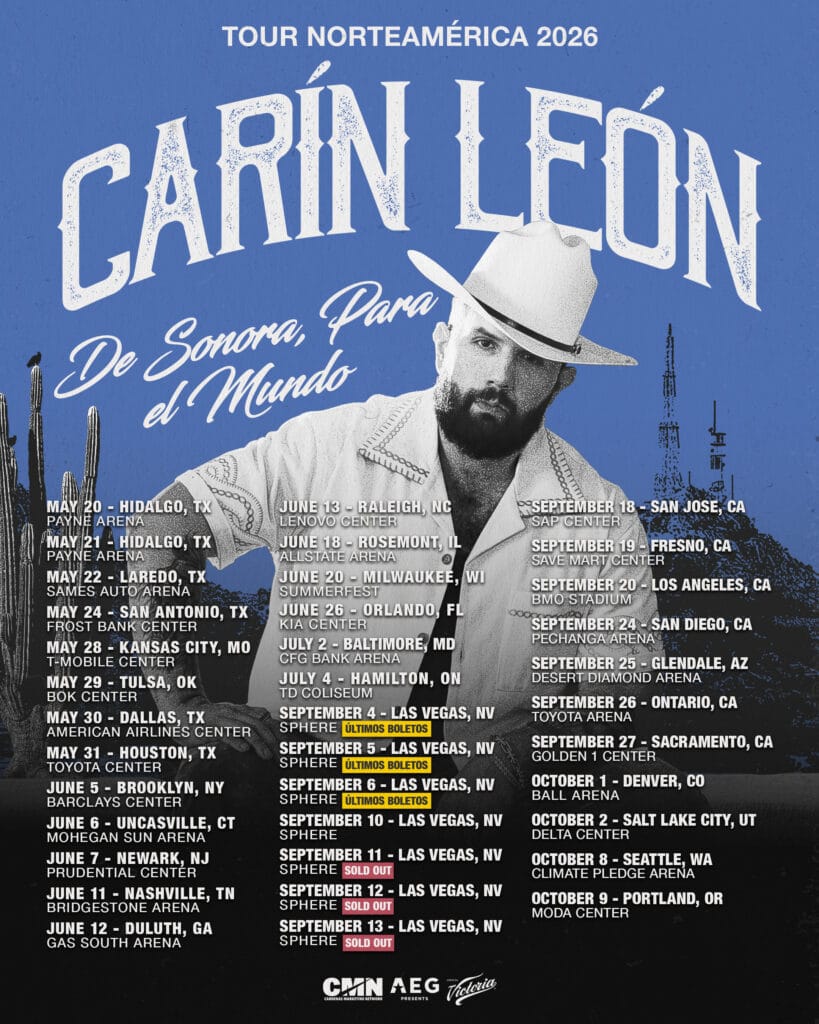 Esta vez vuelve a mirar a Norteamérica, un mercado donde ya es la gran figura de la música regional mexicana pero al que todavía no había entrado por la puerta grande. Eso cambiará este año 2026. Carín León mira al norte. El de ‘Primera Cita’ o ‘QUE VUELVAS’ se embarcará desde la primavera hasta el otoño en su gira más ambiciosa en territorio norteamericano. Nada menos que una treintena de conciertos en los que recorrerá E.E.U.U. y Canadá de norte a sur y de este a oeste pasando por los venues más importantes.